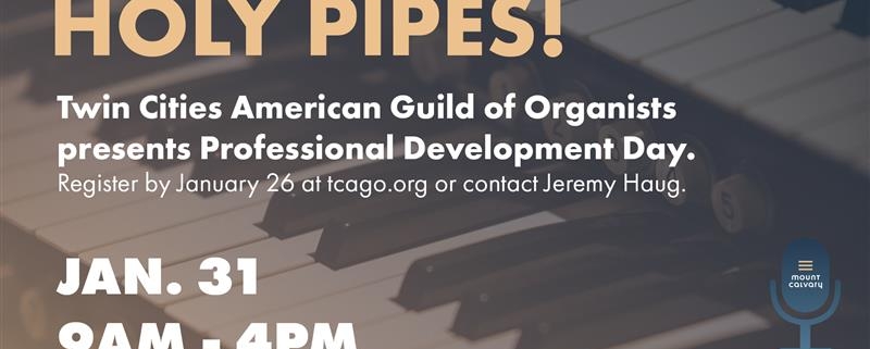 Mount Calvary will host the Twin Cities American Guild of Organists for a day of workshops, fellowship, and an all-day sheet music exchange. Enjoy a catered lunch for $15 by Kathy Horsfall. All are welcome to join! Register by January 26 at tcago.org or contact Jeremy Haug.